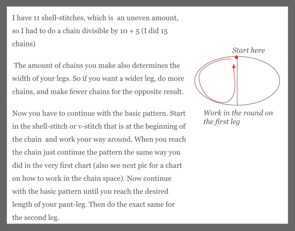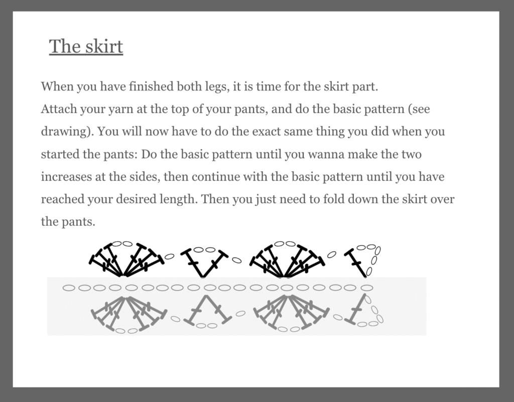 Pants with skirt detail pattern